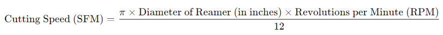 Skjærehastigheten, eller overflatehastigheten, refererer til hastigheten med hvilken skjærekanten på rømmen beveger seg over arbeidsstykket. Det måles vanligvis i overflatefot per minutt (SFM) eller meter per minutt (m/min). For å beregne riktig skjærehastighet for en reamer, bruk følgende formel: