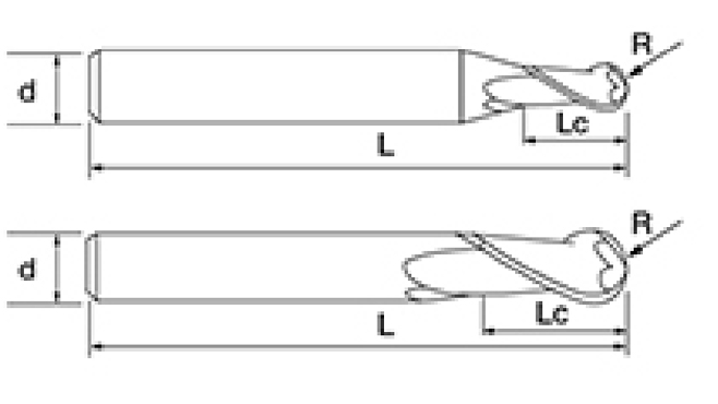 | Nei. | Diameter D | R Vinkel R | Fløytelengde Lc | Totallengde L | Shank Dia d | Bladtall F |