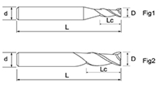 | Nei. | Diameter D | Fløytelengde Lc | Totallengde L | Shank Dia d | Bladtall F |
