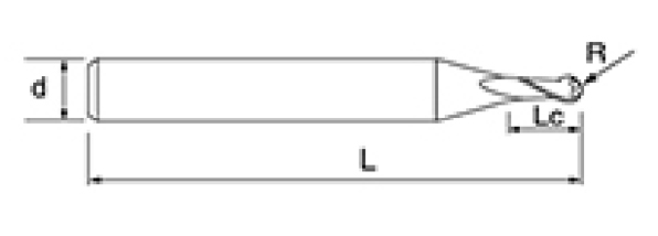 | Nei. | Diameter D | R Vinkel R | Fløytelengde Lc | Totallengde L | Shank Dia d | Bladtall F |