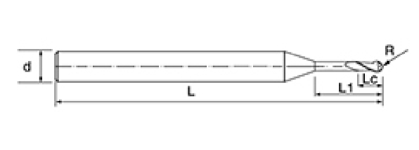 | Nei. | Diameter D | R Vinkel R | Fløytelengde Lc | Effektiv lengde L1 | Totallengde L | Shank Dia d | Bladtall F |
