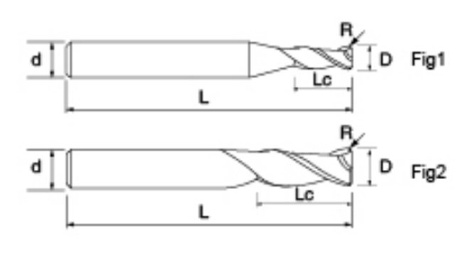 | Nei. | Diameter D | R Vinkel R | Fløytelengde Lc | Totallengde L | Shank Dia d | Bladtall F |