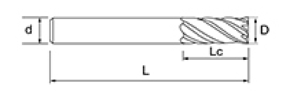 | Nei. | Diameter D | Fløytelengde Lc | Effektiv lengde L1 | Totallengde L | Shank Dia d | Bladtall F |