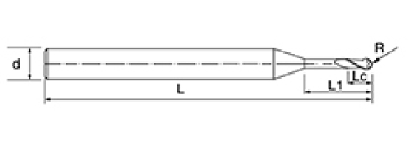 | Nei. | Diameter D | R Vinkel R | Fløytelengde Lc | Effektiv lengde L1 | Totallengde L | Shank Dia d | Bladtall F |