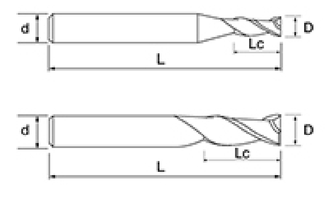 | Nei. | Diameter D | Fløytelengde Lc | Totallengde L | Shank Dia d | Bladtall F |