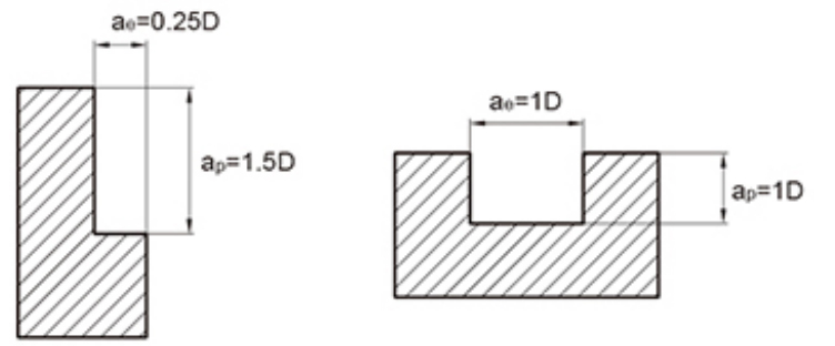 1. Tabellen ovenfor er basert på referanseverdiene for sidefresing. Skjærebetingelsene for sporfresing er basert på 70 % av skjærehastigheten og 50 % av matingshastigheten i tabellen over.