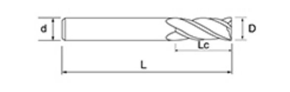 | Nei. | Diameter D | Fløytelengde Lc | Totallengde L | Shank Dia d | Bladtall F |