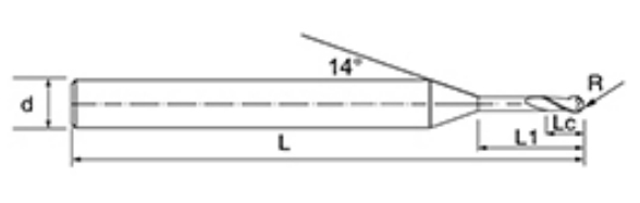 | Nei. | Diameter D | R Vinkel R | Fløytelengde Lc | Effektiv lengde L1 | Totallengde L | Shank Dia d | Bladtall F |