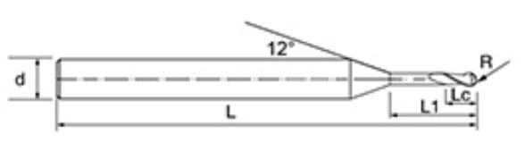 | Nei. | Diameter D | R Vinkel R | Fløytelengde Lc | Effektiv lengde L1 | Totallengde L | Shank Dia d | Bladtall F |