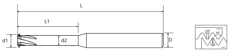 Denne serien dekker metriske gjengestørrelser fra M0,8 til M30, med et bredt diameterområde for å imøtekomme ulike gjengebehov. Entannsgjengemetoden reduserer skjærebelastninger og spindelmomentkrav samtidig som den reduserer verktøyspenningen, noe som bidrar til høyere maskineringsnøyaktighet. Den effektive kuttelengden og skaftdimensjonene er optimalisert for å balansere stivhet og fleksibilitet, noe som gjør verktøyet egnet for både små presisjonskomponenter og større gjengebearbeiding.