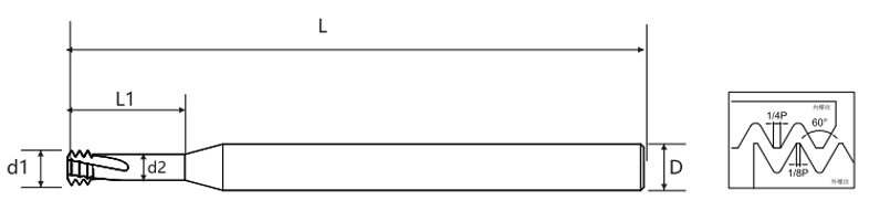 Denne tre-tanns gjengefreseren overholder den metriske ISO-gjengestandarden, og har en gjengevinkel på 60° for høypresisjonsgjenging. Den tre-tanns kuttedesignen tillater samtidig kutting av flere gjengelinjer, forbedrer maskineringseffektiviteten og reduserer kuttebelastningen. Kutteren er tilgjengelig i to primære størrelser: 3 ganger diameter og 4 ganger diameter, med flere diameter og gjenge standardalternativer for å møte ulike maskineringskrav.